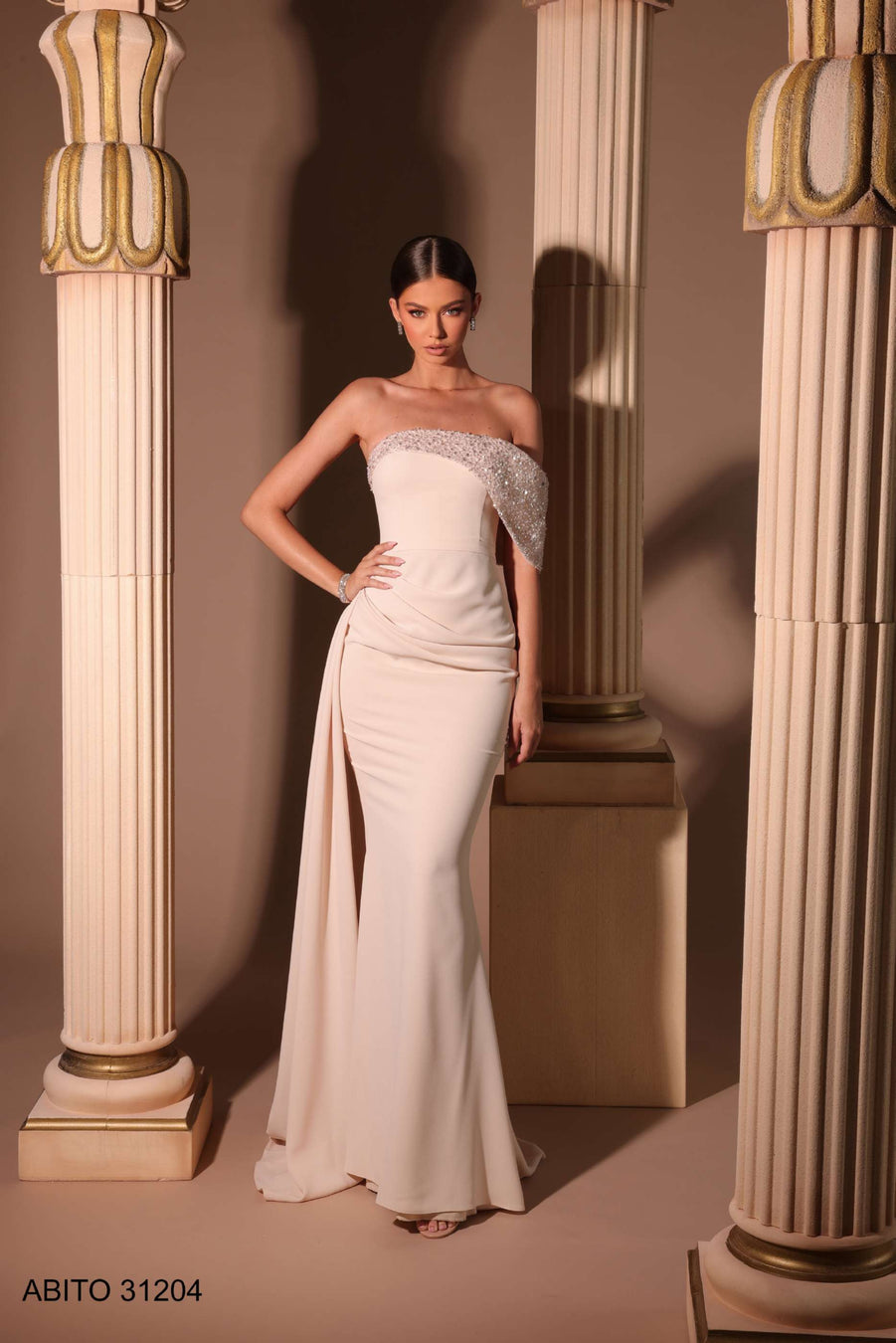Tra fascino ed eleganza, la collezione Cerimonia si compone di abiti senza tempo realizzati con tessuti ricercati. Questo modello è definito da gia...