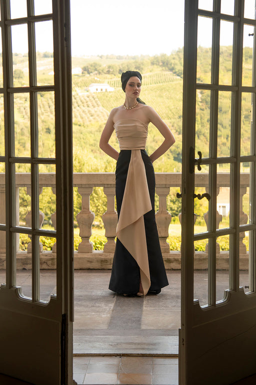 Un capo esclusivo e lussuoso dedicato alle occasioni più magiche e speciali. Questo abito lungo definito dall'esclusiva fantasia è completato dal g...