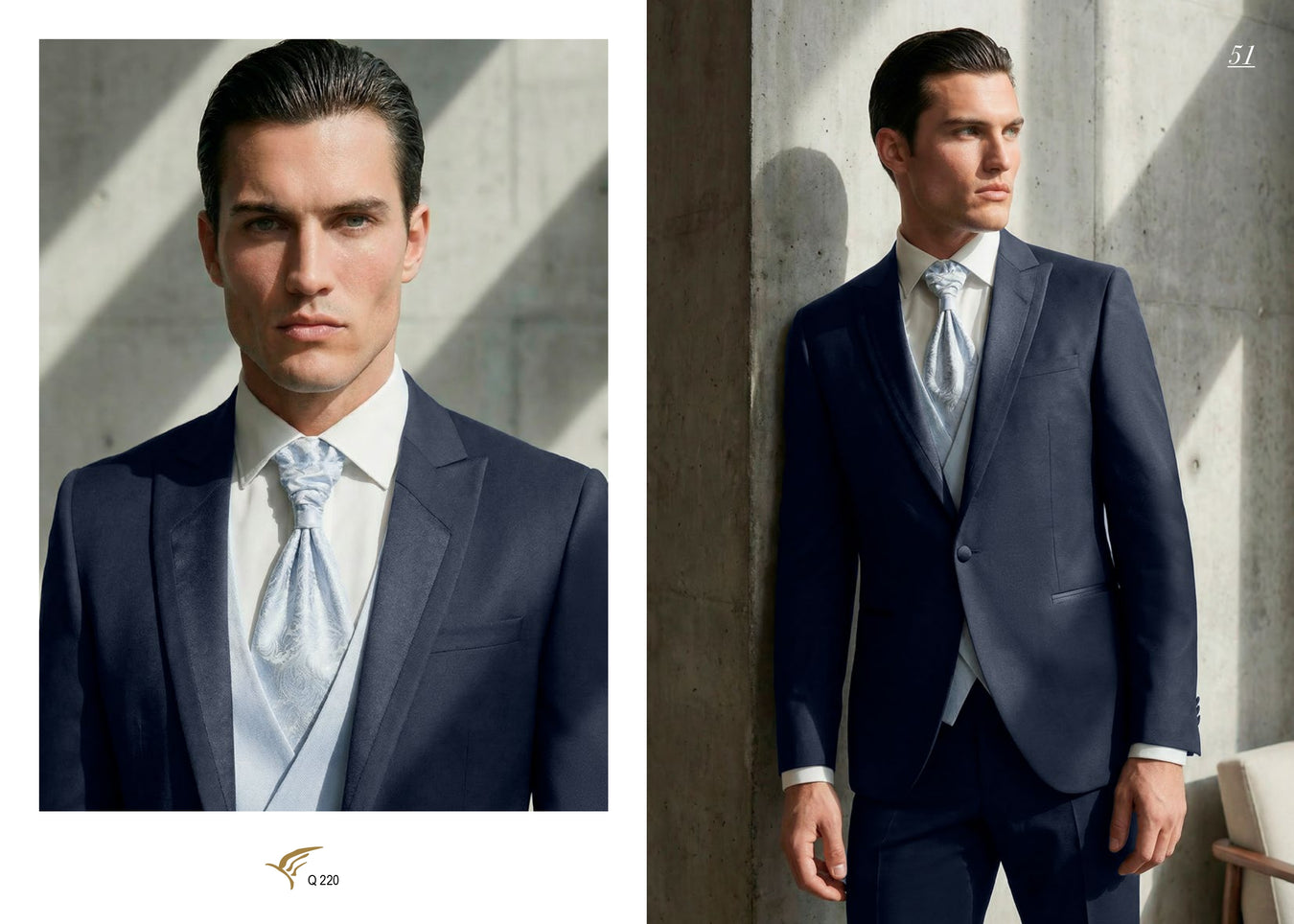Abito tre pezzi caratterizzato da: giacca monopetto con doppio collo staccabile, tasche a filetto e taschino per pochette. Tasche interne. Il tutto...