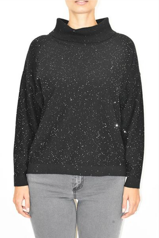 Un capo immancabile nel guardaroba di ogni donna. Maglione dolcevita glitterato realizzato in morbida viscosa. Vestibilità calibrata. Made in Italy.
